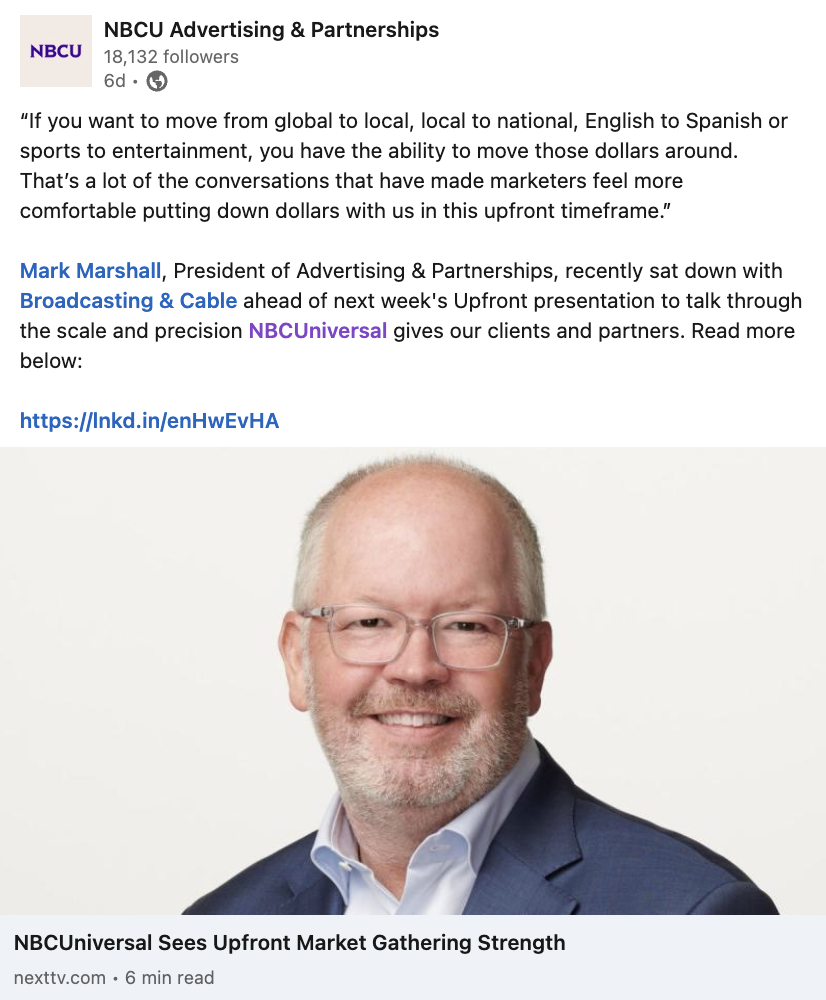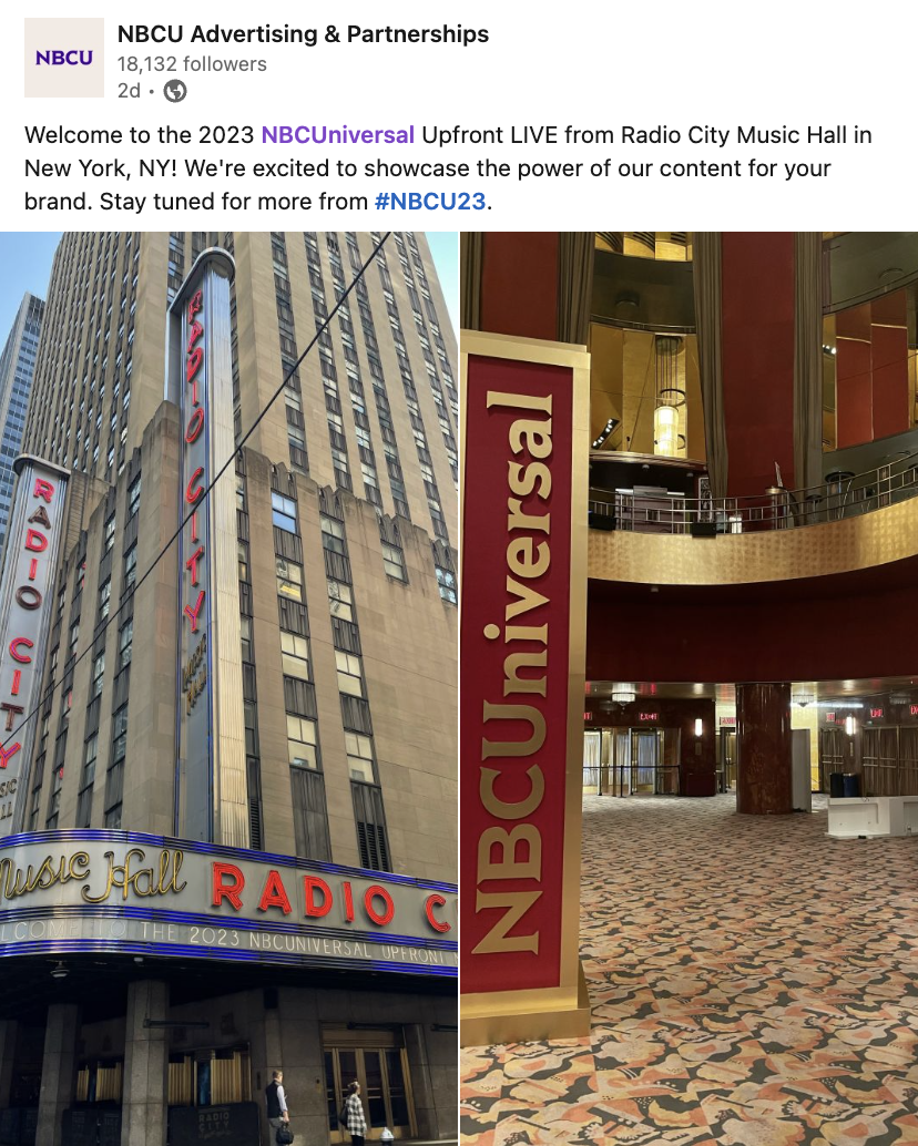 Position NBCU as industry leader in premium content, creators, and solutions for advertisers ahead of Upfront event in New York City using relevant marketing channels.