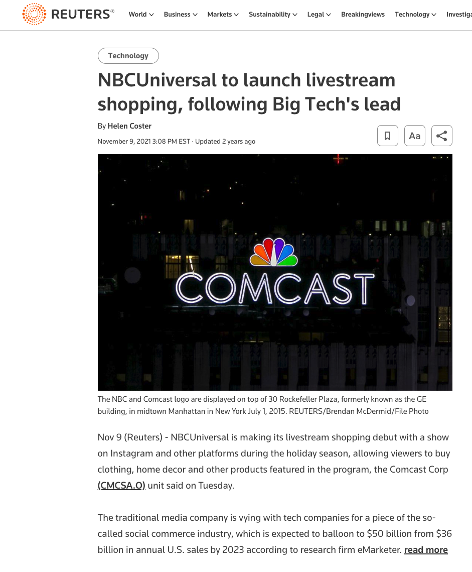 Drive viewership for NBCU’s first livestream shoppable social shows on Black Friday, Small Business Saturday, and Cyber Monday across Instagram, Facebook, Xfinity, and Peacock.