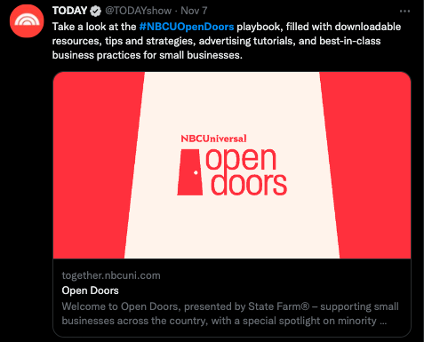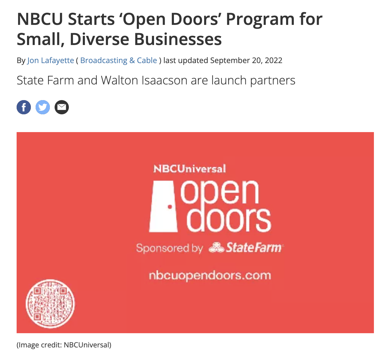 In partnership with launch partner State Farm, NBCU’s Open Doors initiative provides small business owners with educational and actionable resources in the marketing and creative realm.